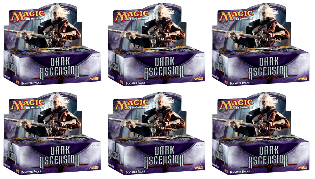 This case of Dark Ascension Booster Displays contains 6 displays in total! (Each Dark Ascension Booster Display contains 36 Draft Booster packs in total.)