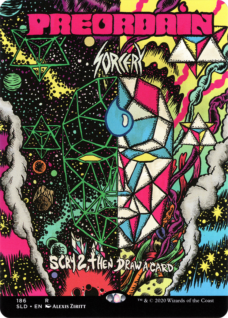 Scry 2, then draw a card. (To scry 2, look at the top two cards of your library, then put any number of them on the bottom of your library and the rest on top in any order.)