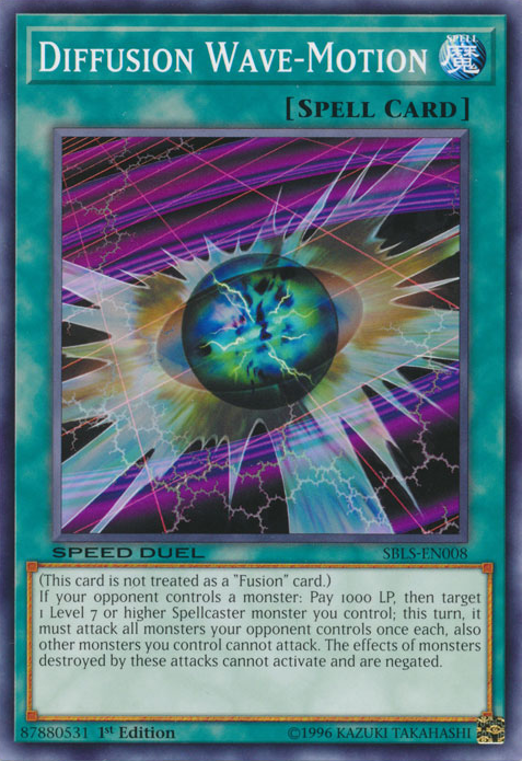 (This card is not treated as a "Fusion" card.) If your opponent controls a monster: Pay 1000 LP, then target 1 Level 7 or higher Spellcaster monster you control; this turn, it must attack all monsters your opponent controls once each, also other monsters you control cannot attack. The effects of monsters destroyed by these attacks cannot activate and are negated.