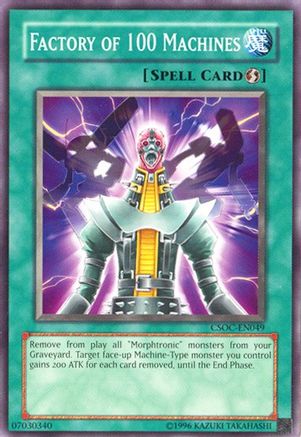 Remove from play all "Morphtronic" monsters from your Graveyard. Target face-up Machine-Type monster you control gains 200 ATK for each card removed, until the End Phase.