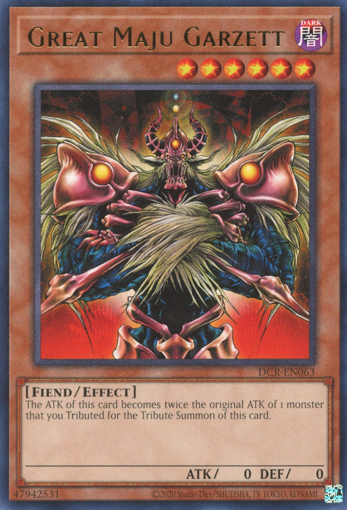 The ATK of this card becomes twice the original ATK of the Tribute Monster you used to Tribute Summon this card.