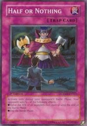 Activate only during your opponent's Battle Phase. Your opponent selects and executes 1 of the following effects: • Halve the ATK of all monsters they controls until the end of the Battle Phase. • End the Battle Phase.