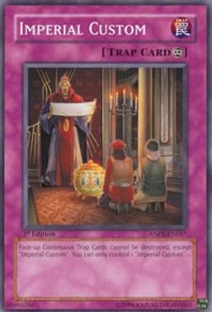Face-up Continuous Trap Cards cannot be destroyed, except "Imperial Custom". You can only control 1 "Imperial Custom".