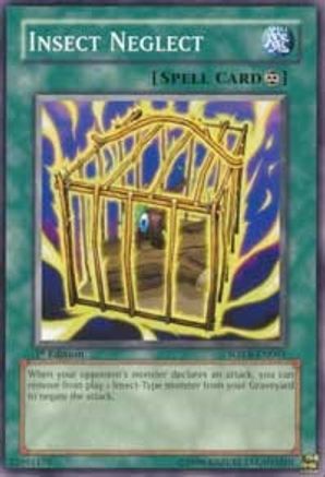 When an opponent's monster declares an attack, you can remove from play 1 Insect-Type monster from your Graveyard to negate the attack.