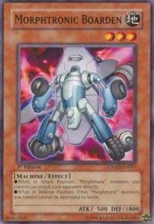 • While in Attack Position: "Morphtronic" monsters you control can attack your opponent directly. • While in Defense Position: Other "Morphtronic" monsters you control cannot be destroyed by battle.