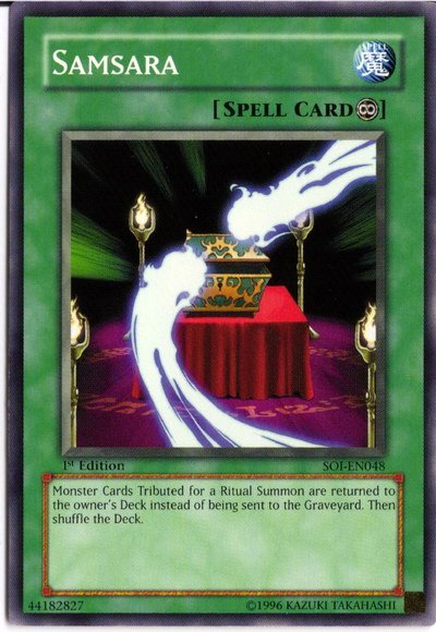 Monster Cards Tributed for a Ritual Summon are returned to the owner's Deck instead of being sent to the Graveyard. The shuffle the Deck.