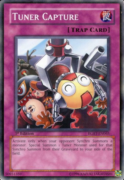 Activate only when your opponent Synchro Summons a monster. Special Summon 1 Tuner Monster used for that Synchro Summon from their Graveyard to your side of the field.